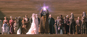 That was fine with me, as I thought the format allowed for a fair amount of spontaneity but it came across as a tight, well-edited piece. As a whole, the commentary offered a lot of very solid information. Due to the qualifications of most of the participants, technical realms dominated the proceedings, but not to the degree one might anticipate. The discussion moved briskly across effects issues and overall story points, and Lucas was a very active speaker. He talked about a mix of issues that concerned him, such as fitting this story into the six-part whole and his editorial challenges. McCallum also contributed a lot of information about those topics.